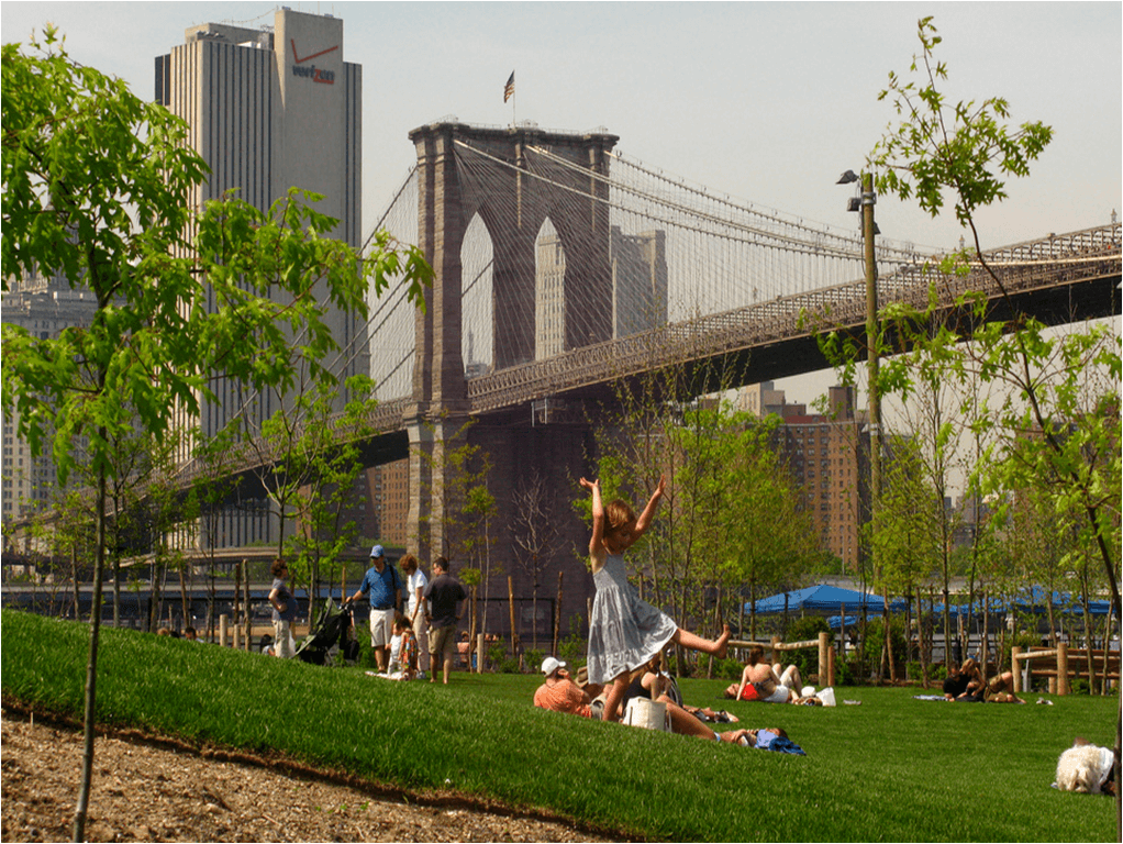 Various sections for leisure in Brooklyn Bridge Park