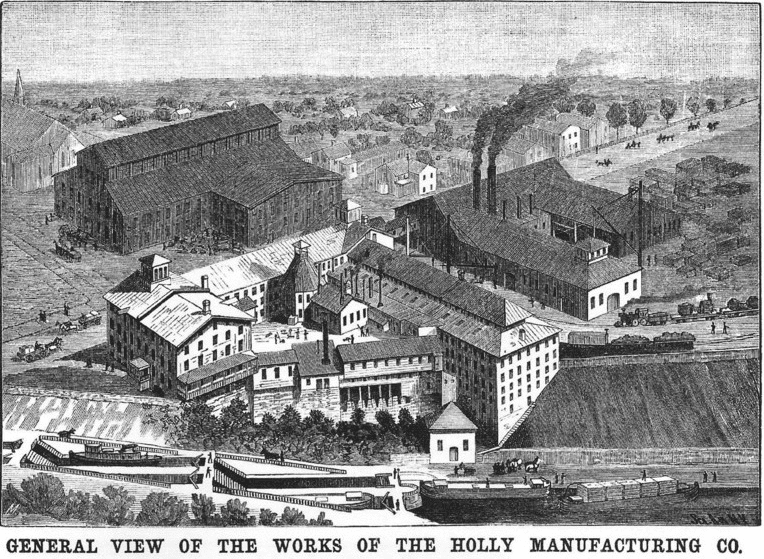 In 1859, Holly founded his own company, the Holly Manufacturing Company. From that point on, Holly began manufacturing sewing machines, pumps for cisterns, and rotary pumps.