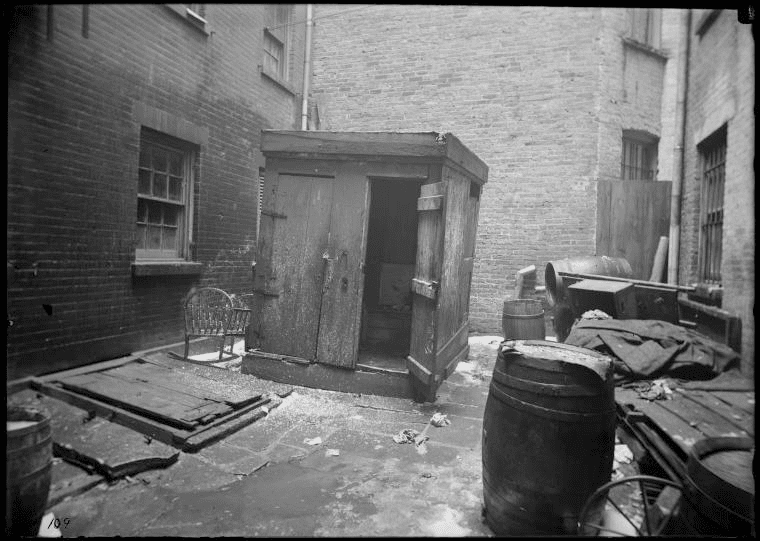 Через відсутність належно розвиненої інфраструктури, надвірні прибудови з вигрібною ямою були звичайним явищем. Саме сюди ходили до туалету мешканці Нью-Йорка 19 століття. Але що ж собою представляла надвірна прибудова з ямою?